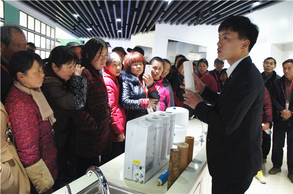 此批消費者大多來自于鄉(xiāng)鎮(zhèn)地區(qū),他們普遍反映,由于井水水垢水堿較重,味道苦咸,兒女回家過年都喝不慣。為了徹底解決家里的飲水難題,許多消費者有安裝凈水機的打算,但是如何選擇放心的品牌,卻著實不易?!澳芨鷣砜纯磧羲畽C生產(chǎn)廠家,了解到產(chǎn)品質(zhì)量和售后都有保障,心里很踏實,回去裝上家人喝水安全,用著也比去買桶裝水更方便?!背埠膭⒋鬆斝χf。