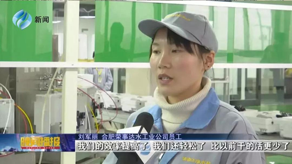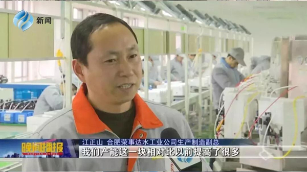213日晚2130分,合肥新聞頻道《晚間播報》節(jié)目播出新聞《人勤春來早 新車間開啟新目標》,榮事達水工業(yè)公司作為本土知名企業(yè),在新春伊始全面開啟生產(chǎn)模式,公司全新投入使用的全自動智能化生產(chǎn)線、檢測線上已是一片忙碌景象。