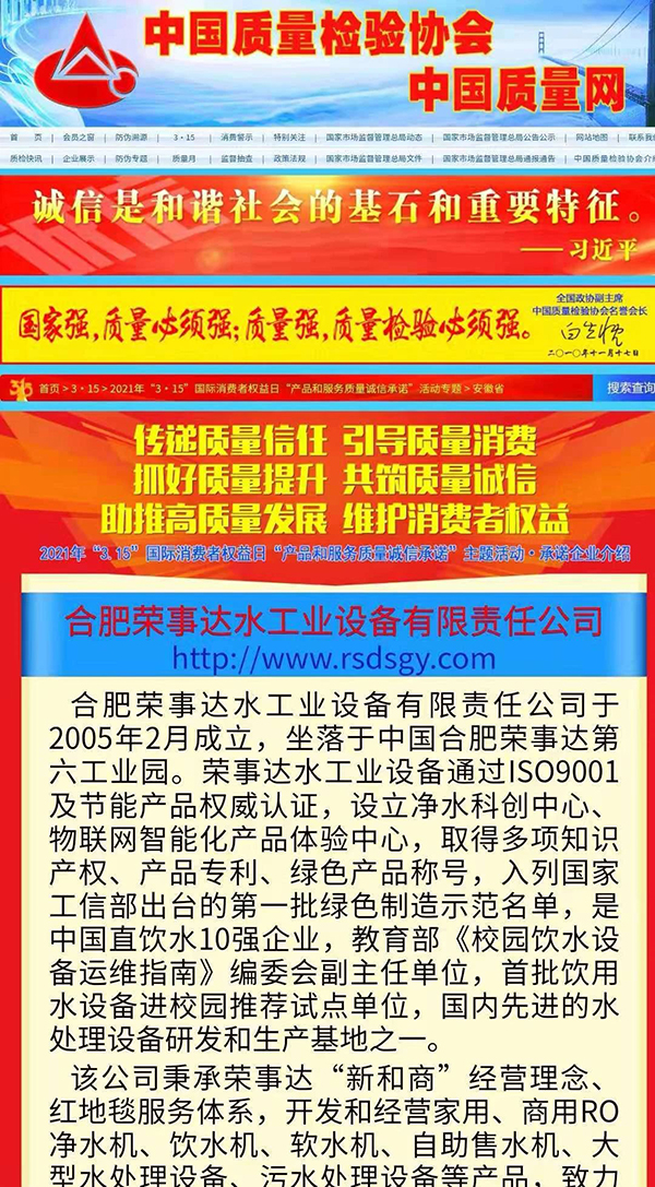 共筑質(zhì)量誠(chéng)信,引導(dǎo)質(zhì)量消費(fèi)。在由中國(guó)質(zhì)量檢驗(yàn)協(xié)會(huì)主辦的2021年“3.15”產(chǎn)品和服務(wù)質(zhì)量誠(chéng)信承諾的主題活動(dòng)中,榮事達(dá)憑借卓越的產(chǎn)品品質(zhì)及良好的社會(huì)形象,獲得協(xié)會(huì)以及權(quán)威專家的一致認(rèn)可,榮膺 “全國(guó)產(chǎn)品和服務(wù)質(zhì)量誠(chéng)信示范企業(yè)”“全國(guó)質(zhì)量信得過(guò)產(chǎn)品”“全國(guó)凈水行業(yè)質(zhì)量領(lǐng)先品牌” “全國(guó)質(zhì)量誠(chéng)信先進(jìn)企業(yè)”多項(xiàng)榮譽(yù),《中國(guó)質(zhì)量報(bào)》、《中國(guó)消費(fèi)者報(bào)》及中國(guó)質(zhì)量網(wǎng)、中國(guó)經(jīng)濟(jì)網(wǎng)、中國(guó)消費(fèi)網(wǎng)等多家媒體均予以集中展示和公告。