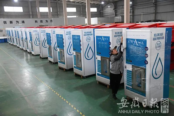 員工在自動(dòng)售水機(jī)生產(chǎn)線上作業(yè)