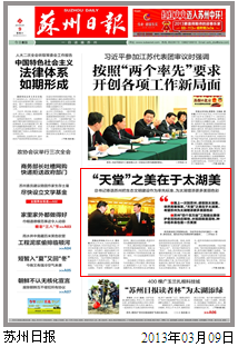 習(xí)近平對蘇州的秀美記憶猶新,“江南是個好地方,自古就有‘上有天堂,下有蘇杭’之美譽(yù)。之所以稱蘇杭為‘天堂’,不僅因為那里經(jīng)濟(jì)繁榮、社會安定,‘日出江花紅勝火,春來江水綠如藍(lán),能不憶江南’,江南美景美不勝收啊?!薄懊利愔袊毙枰椭C共建。蘇州的“四個百萬畝”工程給總書記留下了深刻印象。在最后的發(fā)言中,習(xí)近平又一次“點(diǎn)評”起蘇州:“蘇州‘四個百萬畝’工程提出要保護(hù)老百姓的莊稼地,水稻田就是濕地,種水稻本身也是一方美景,《紅樓夢》里大觀園中也有稻香村嘛?!绷?xí)近平鼓勵說,和諧、全面是對科學(xué)發(fā)展內(nèi)涵理解得更深刻的反映,希望蘇州在率先、排頭、先行的內(nèi)涵中,把生態(tài)作為一個標(biāo)準(zhǔn),為江蘇乃至全國發(fā)展作出新貢獻(xiàn)。
