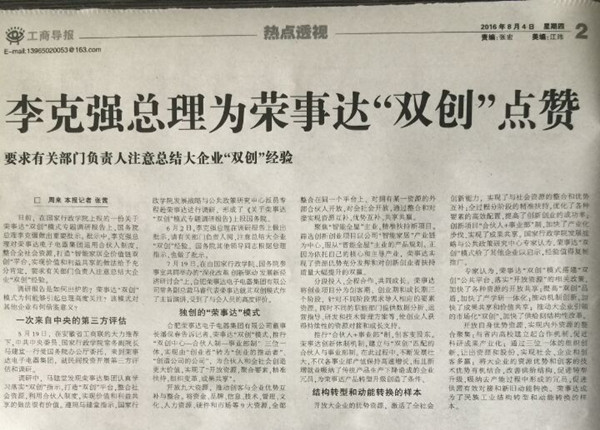 - 李克強總理為榮事達“雙創(chuàng)”點贊