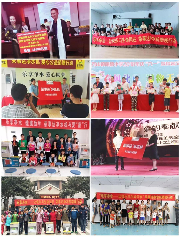 早在2011年,榮事達(dá)就面向全國(guó)開(kāi)展“樂(lè)享凈水?健康助學(xué)行動(dòng)”,截至目前已向安徽、江蘇、陜西、江西、河南、河北等多個(gè)地區(qū)的學(xué)校捐贈(zèng)凈水設(shè)備數(shù)千套。2016年,榮事達(dá)走進(jìn)紅色革命老區(qū)金寨縣,向全國(guó)首個(gè)希望小學(xué)——金寨希望小學(xué)捐贈(zèng)了直飲水設(shè)備,兩千多名師生因此喝上了健康直飲水。之后,榮事達(dá)聯(lián)合金寨希望公益服務(wù)中心及地方公益協(xié)會(huì)共同發(fā)起“給山區(qū)孩子一杯水”——援建金寨中小學(xué)凈水設(shè)備公益活動(dòng),榮事達(dá)援建400多套直飲水設(shè)備,幫助全縣的學(xué)校解決了飲水難題。該公益項(xiàng)目引發(fā)了社會(huì)各界熱烈關(guān)注,被評(píng)為“安徽省十佳學(xué)雷鋒志愿服務(wù)項(xiàng)目?jī)?yōu)秀典型”。立責(zé)于心,健康助學(xué),在公益這條路上,榮事達(dá)未來(lái)將繼續(xù)推進(jìn),為更多校園送去安全水,盡心呵護(hù)孩子們健康成長(zhǎng)。
