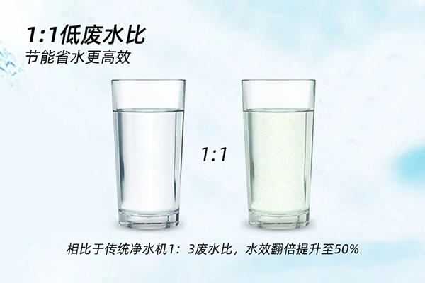在提升用戶體驗(yàn)的同時(shí),榮事不斷追求節(jié)水技術(shù)的升級,以創(chuàng)新科技實(shí)現(xiàn)1:1超低廢水比。400G智能反滲透凈水機(jī)相比于傳統(tǒng)凈水機(jī)的1:3廢水比,出水效率由25%翻倍提升至50%,大大減少廢水排放,不僅節(jié)能環(huán)保,而且也節(jié)省了每一個(gè)家庭的生活開支,備受消費(fèi)者喜愛。