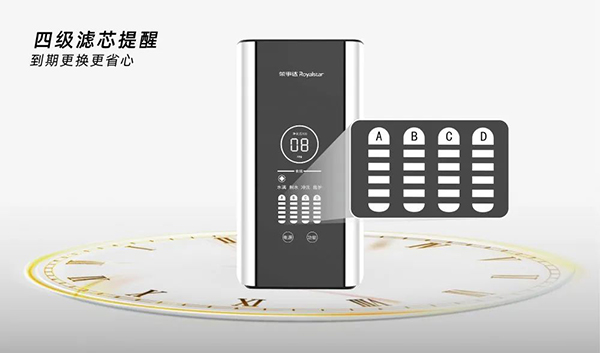 現(xiàn)代人越發(fā)追求極致簡約的生活方式。為使大眾凈水生活更加便捷省心,榮事達(dá)400G智能反滲透凈水機(jī)全面提升產(chǎn)品的智能化體驗(yàn),融入四級濾芯更換提醒功能,濾芯壽命到期閃爍燈即時(shí)提示,LED智能顯示面板運(yùn)行狀態(tài)一目了然,讓用戶使用無后顧之憂,隨心所享,安心更省心。