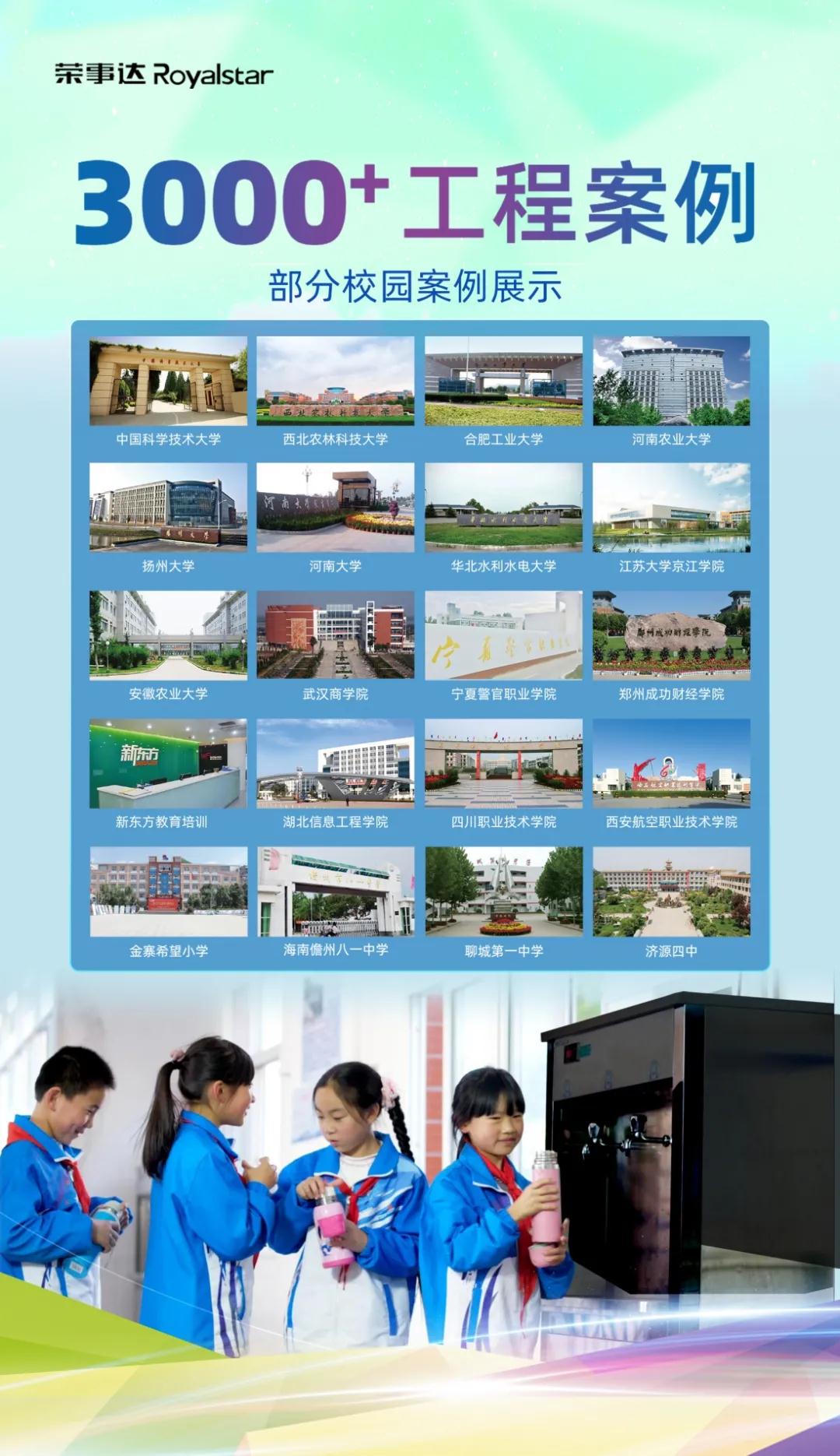 隨著現(xiàn)代化教育的全面推進(jìn),榮事達(dá)將人性化設(shè)計作為產(chǎn)品設(shè)計準(zhǔn)則,充分發(fā)揮自身技術(shù)、產(chǎn)品、質(zhì)量、服務(wù)等多方優(yōu)勢,為小朋友提供綜合智能飲水服務(wù)方案,讓更多祖國的花朵擁有健康安全的飲水體驗,用心“喝”護(hù)健康茁壯成長!