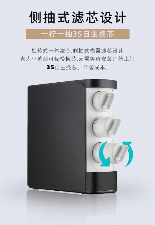 科技讓生活更美好。榮事達(dá)智能反滲透純水機(jī)利用科技之力實(shí)現(xiàn)產(chǎn)品創(chuàng)新,讓更多人都能享受科技帶來的美好生活,側(cè)抽式濾芯設(shè)計(jì),一擰一抽3秒自主換芯,真正體現(xiàn)了將細(xì)節(jié)做到極致。