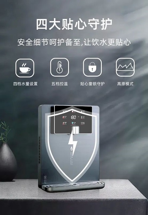 四大貼心守護(hù),讓飲水更貼心。四檔水量設(shè)置,定量取水,無需等待;五檔控溫,專溫專飲,給您最適宜的溫度,滿足多種需求;貼心童鎖守護(hù),童鎖鍵預(yù)防寶寶誤觸,避免安全隱患導(dǎo)致燙傷,安全細(xì)節(jié)呵護(hù)備至;內(nèi)置高原模式,適應(yīng)各類海拔高度,充分考慮高海拔地區(qū)家庭飲水需要。