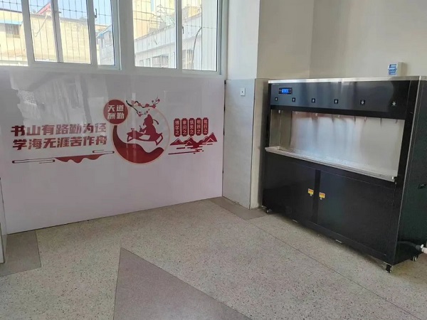 此次用于邳州市第四中學的節(jié)能直飲機采用四開兩溫設計,設置6個出水口,四個開水口,兩個溫水口,可同時滿足多人接水飲用,充分迎合了學校師生眾多,集中接水的需求。