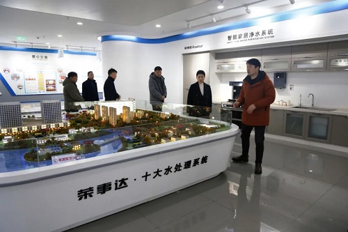 領(lǐng)導(dǎo)一行先后參觀了榮事達(dá)智能家用凈水生產(chǎn)車(chē)間和智慧水世界展廳。了解榮事達(dá)企業(yè)綜合實(shí)力及十大水處理系統(tǒng)具體發(fā)展?fàn)顩r。