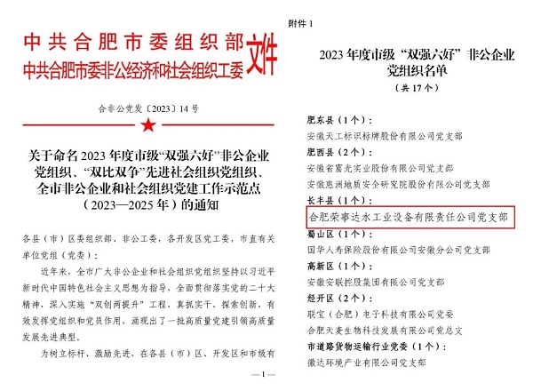 - 開年第一獎!榮事達水工業(yè)黨支部榮獲市級“雙強六好”非公企業(yè)黨組織稱號