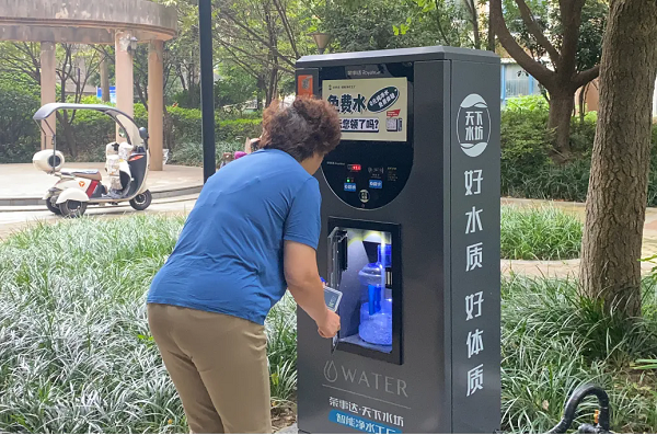 此次入駐安高 · 城市天地,榮事達水工業(yè)團隊經(jīng)過精心設(shè)計和施工,確保凈水工廠與小區(qū)環(huán)境和諧共生,更多的滿足居民打水的便捷性,共設(shè)有近二十個終端取水點。
