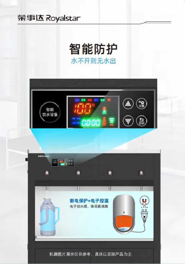 設(shè)備采用節(jié)能熱交換技術(shù),熱損低,更節(jié)能;保溫結(jié)構(gòu)設(shè)計(jì),保溫效果好。六個(gè)水龍頭設(shè)計(jì),有效應(yīng)對(duì)飲水量大與飲水集中的問(wèn)題,確保供水順暢。五級(jí)過(guò)濾,RO反滲透技術(shù),有效濾除水中的泥沙、鐵銹、重金屬、余氯等有害物質(zhì),確保水質(zhì)干凈;智能防護(hù)功能,斷電保護(hù)、電子控溫、七重保護(hù),可充分保障師生使用安全。