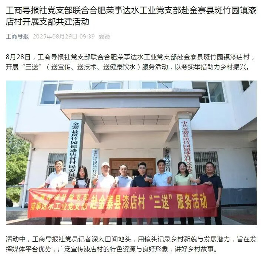 工商導報社黨支部聯(lián)合合肥榮事達水工業(yè)黨支部赴金寨縣斑竹園鎮(zhèn)漆店村開展支部共建活動