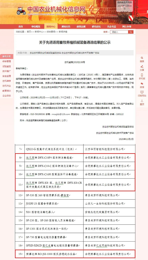 重磅!榮事達反滲透純水設備、防疫洗消設備成功入選國家農(nóng)業(yè)農(nóng)村部先進適用畜牧養(yǎng)殖機械裝備遴選名單