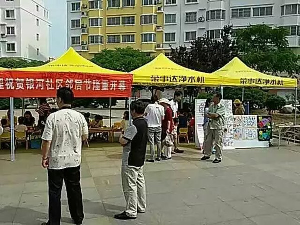 據(jù)悉,為了居民們在炎熱的夏日感受到一絲清涼,榮事達(dá)凈水機(jī)山東日照代理商和公司工作人員為居民們現(xiàn)場搭建帳篷,并且將凈水機(jī)搬到了活動現(xiàn)場,方便大家在參加活動的時候喝到免費安全的健康水。現(xiàn)制現(xiàn)飲的純凈水受到了居民們的一致好評。
