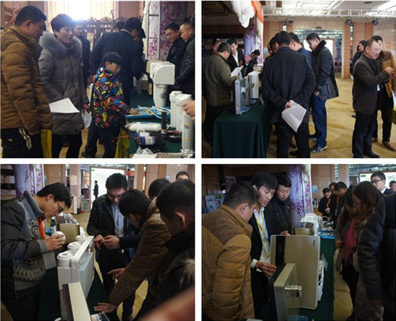 華北大區(qū)營銷總監(jiān)胡鋒在發(fā)布會上重點講解了新款產(chǎn)品的技術亮點和獨特功能。2016款新品融“精細化”、“個性化”、“便捷化”、“人性化”、“安全化”五大價值于一體,彰顯了卓越品質。具備增壓、自吸功能的廚下純水機R8,一體式龍頭設計、可廚上廚下隨心安置的箱體LED純水機,三秒即熱、即制即飲的速熱飲水機等2016款新品在發(fā)布會首次亮相,時尚美觀、功能完備的新款產(chǎn)品紛紛受到客戶矚目。