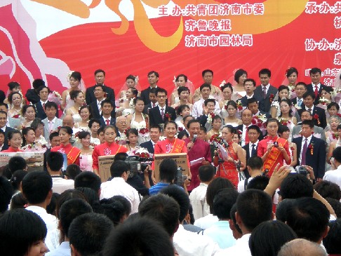 摘要:9月20日,備受關(guān)注的“圓百年夢想,結(jié)百年情緣——2008中國濟(jì)南市齊魯情玫瑰婚典”大型集體婚禮在濟(jì)南市泉城廣場開幕,本屆是由濟(jì)南市團(tuán)市委、杭...