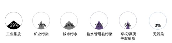 ——污染源:城市水污染主要與產(chǎn)業(yè)結(jié)構(gòu)有關(guān),工業(yè)排放(29%)和“礦業(yè)污染”(11%)對(duì)水資源的污染占到四成。值得關(guān)注的是,“城市污水”污染被24%被訪(fǎng)者認(rèn)為其是主要污染源。蘭州水污染事件讓人們注意到了“輸水管道被污染”對(duì)水安全造成的影響,15%被訪(fǎng)者認(rèn)為自己所住城市的水污染受此影響。有專(zhuān)家分析水污染,認(rèn)為“草根、藻類(lèi)等腐殖質(zhì)”是主要原因之一,被訪(fǎng)者中6%接受這一看法。