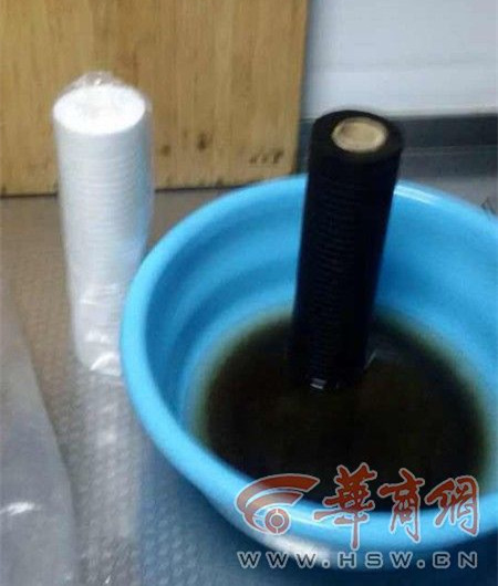 看著黑色的濾芯,20多歲的小楊不免有些害怕。這是她今年5月份才裝的凈水器,沒想到半年下來濾芯就變成這個顏色。“小區(qū)水質(zhì)不是很好,我們就想著裝一個凈水器?!毙钫f,她今年剛搬進陳楊寨的華宇藍(lán)郡,雖然有時水管里會流出淡黃色的水,但也沒在意,直到前兩天看見黑色的濾芯后,才有點擔(dān)心。